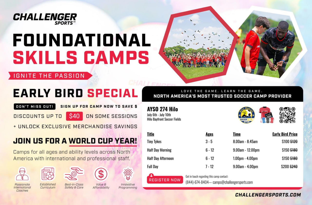 π Register here: https://challengersports.com/camps/ayso-274-hilo-hilo-hi/