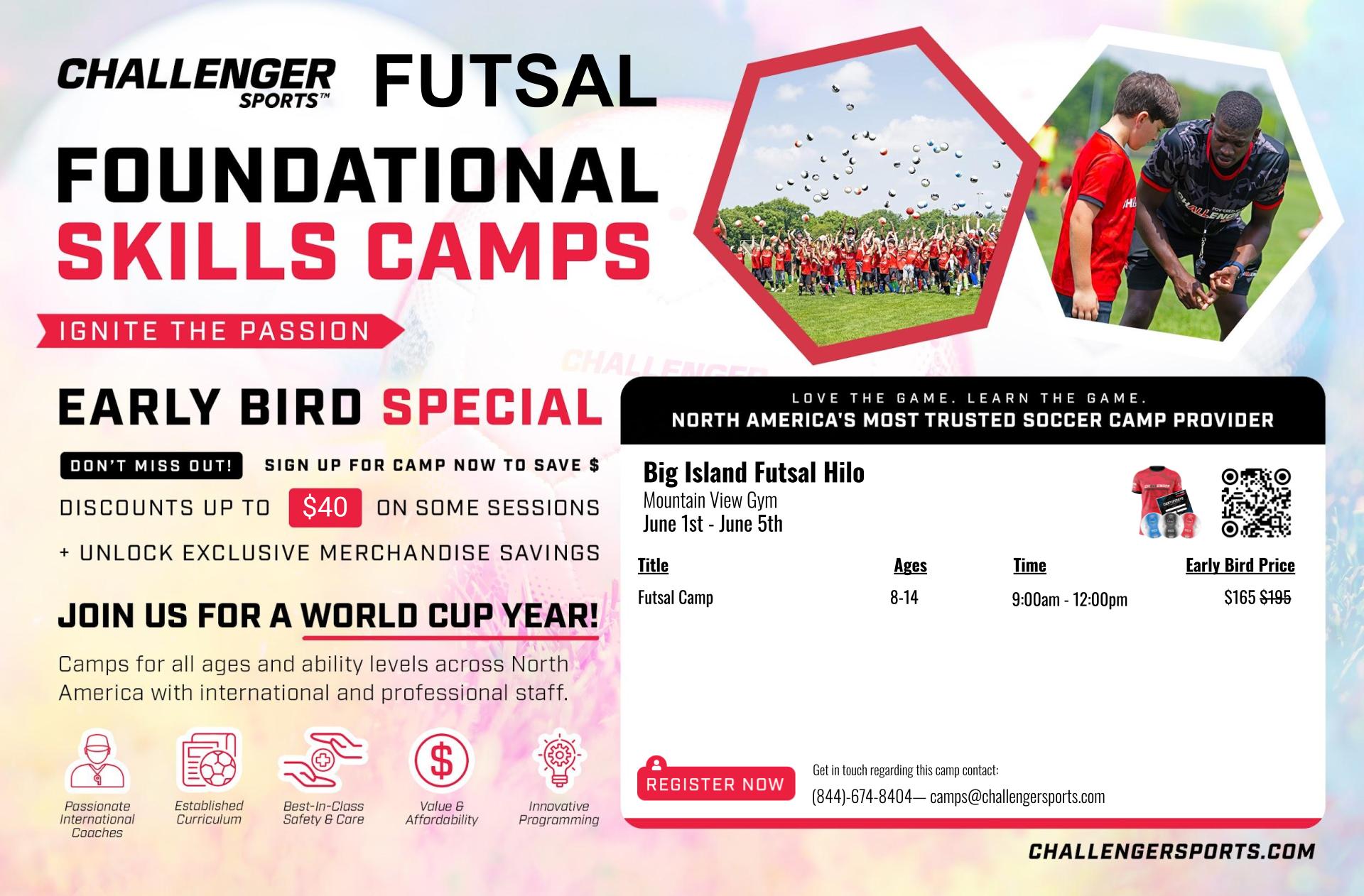 π Register here: https://challengersports.com/camps/big-island-futsal-hilo-mountain-view-hi/